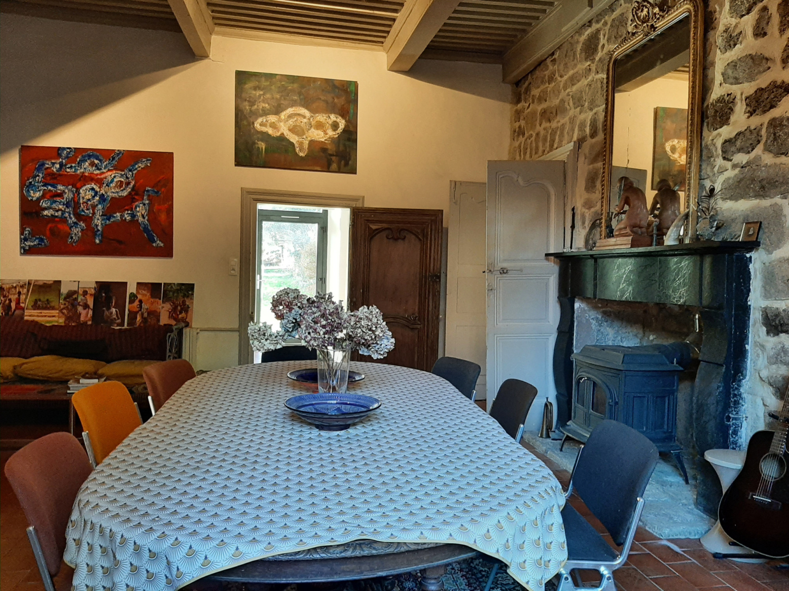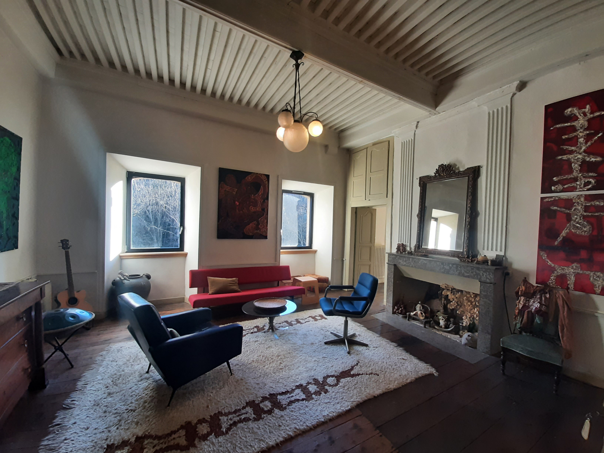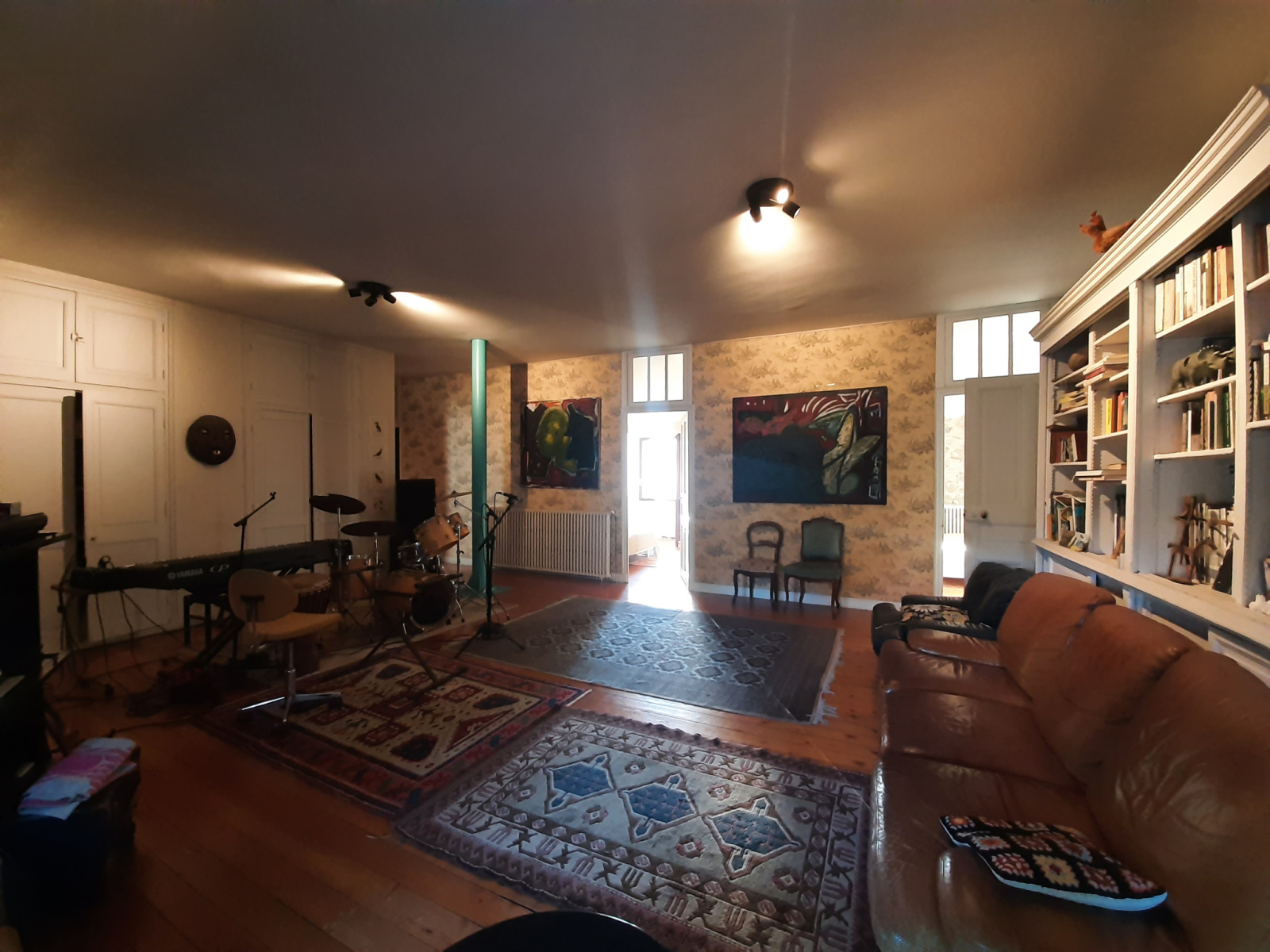 La maison développe une surface habitable d’environ 369 m², répartie en 12 pièces, avec de vastes espaces de réception offrant de belles hauteurs sous plafonds à la française, véritables marqueurs du charme de l’ancien.